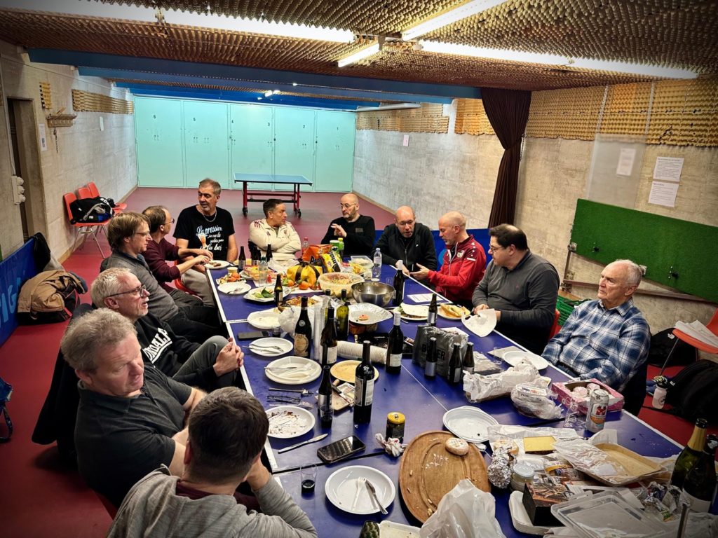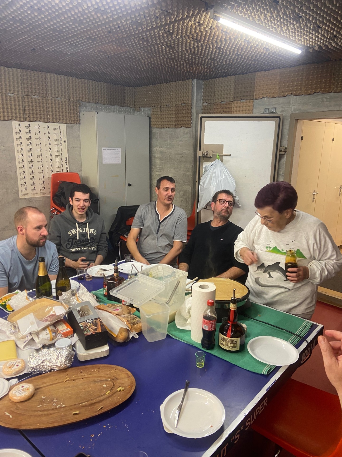 Après le tournoi, 15 personnes étaient présentes pour partager un apéro-repas canadien dans les abris. Nous avons également eu l’honneur d’avoir pu déguster les délicieuses crêpes de Anne.