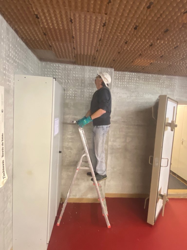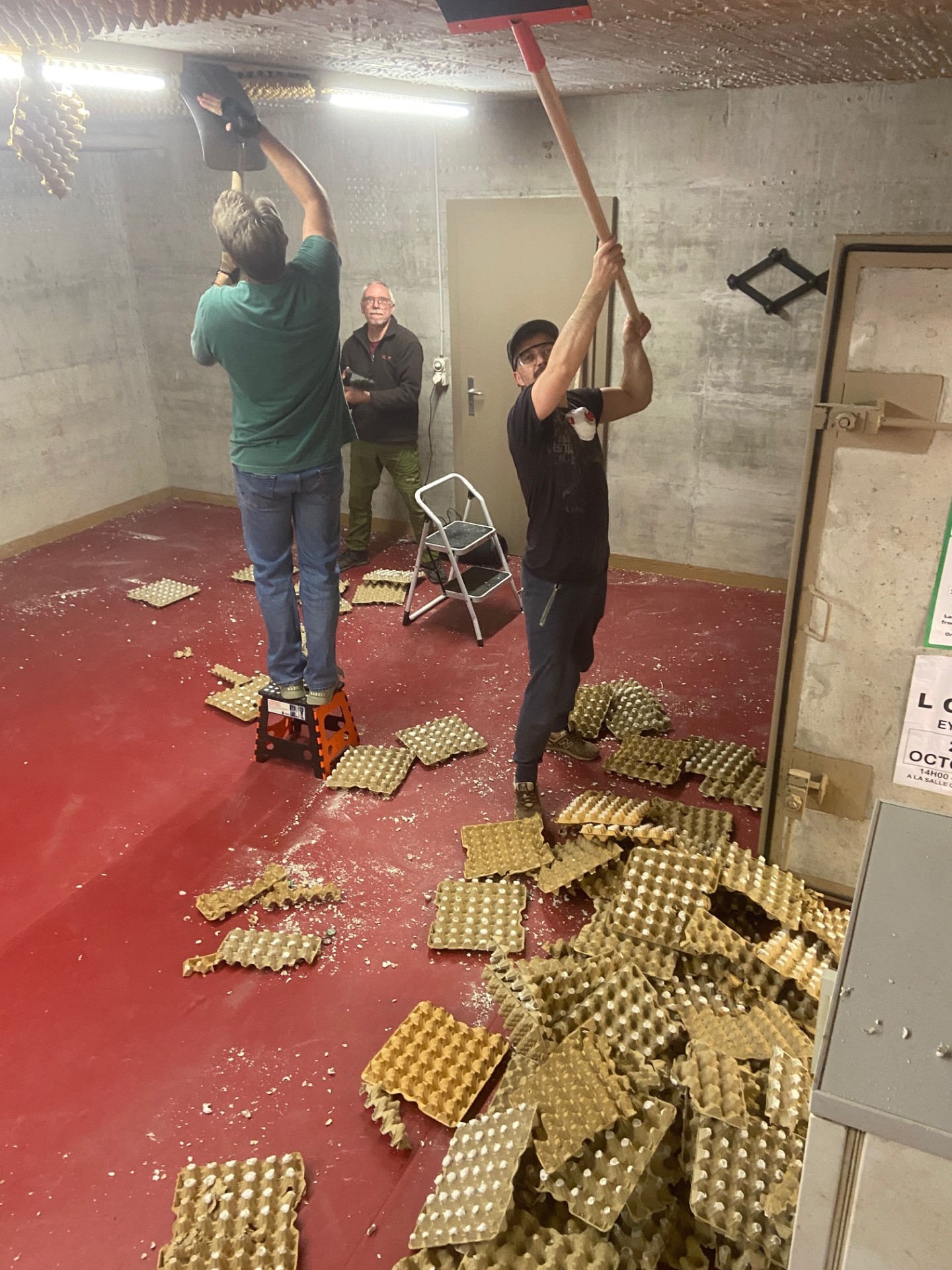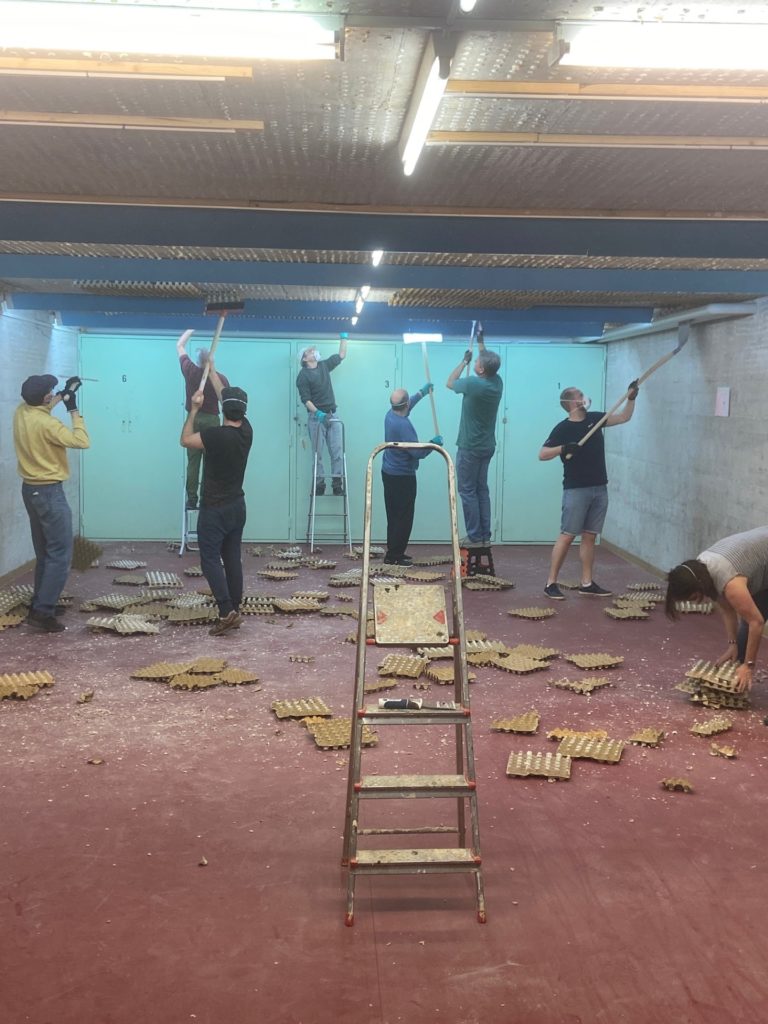 Samedi 21 mars, une dizaine de membres du club se sont retrouvés dans les abris PC pour… enlever les centaines de cartons d’oeuf qui avaient été posé il y a + de 30 ans pour insonoriser les lieux. Ceci était demandé par la commune suite au drame du 1.1 à Crans-Montana.